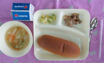 豚肉のデミグラスソース スープ キャベツとコーンのソテー