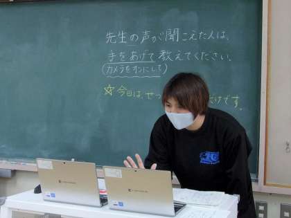 子どもたちのスキルや実態に合わせて、教員は工夫しながら、家庭に映像と音声の両方が届いていることを確認しました。