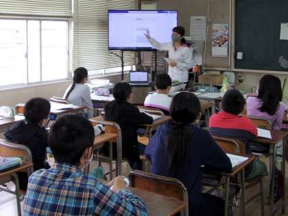 5年生は、タブレット端末を使った家庭学習の手順について説明を受けました。