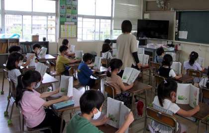 「たんぽぽ」、先生と子どもたちは、「。」(句点)で交代しながら、音読しました。