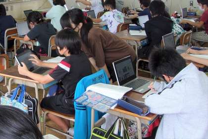 防災ポスターをつくります。 タブレット端末で、インターネットから情報や資料を集めました。