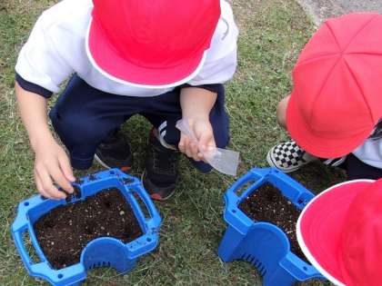 アサガオの種を蒔きました。
