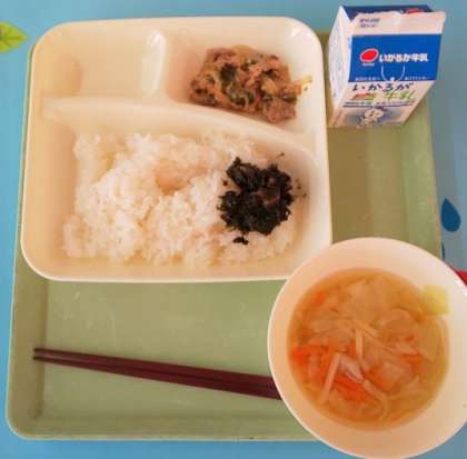 豚肉のごまみそ焼き、すまし汁、のりのつくだ煮