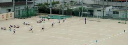 50m走の練習、まっすぐに大きく腕を振って走ります。