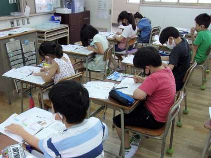 記録を分かりやすく表すために、表に整理する練習をしています。