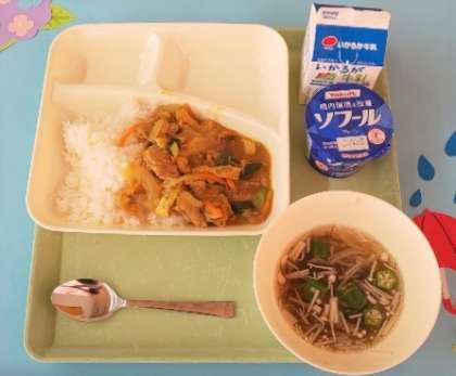 和風カレー丼、もずくとオクラのとろり汁、ヨーグルト