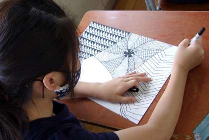 同じ模様をくり返し描いていく「ゼンタングル」を、組み合わせた作品をつくります。
