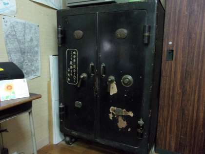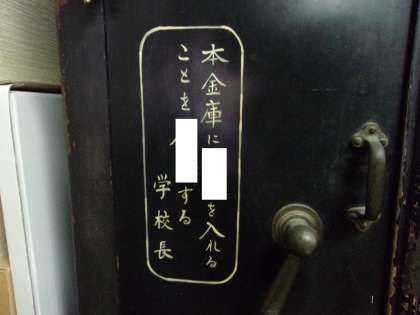 校長室には、大きな古い金庫があります。扉には「本金庫にげんきんをいれることをげんきんする 学校長」と書いてあります。当時の校長先生はしゃれの効いた人だった?