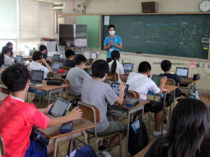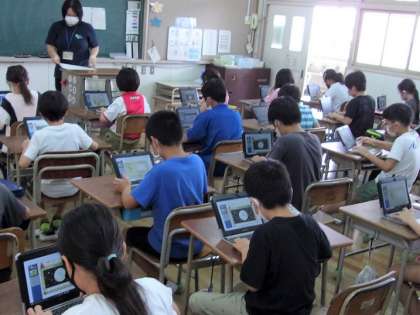 タブレットを使って、一人一人の理解度やペースに合った個別学習をします。