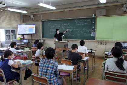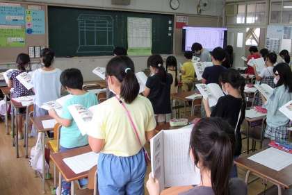 新型コロナウイルスの感染拡大が続き、子どもの陽性者も増える中、本校でも、給食でおわんにおかずを盛る際は、素手ではなく、ビニール手袋をつける、給食前の手洗い後は、食器以外の物はさわらない等、給食時をはじめ、学校生活における感染症対策を、2学期からさらに徹底しています。子どもたちは、制約も多く、不安やストレスを感じているはずですが、しっかり学習に取り組んでいます。