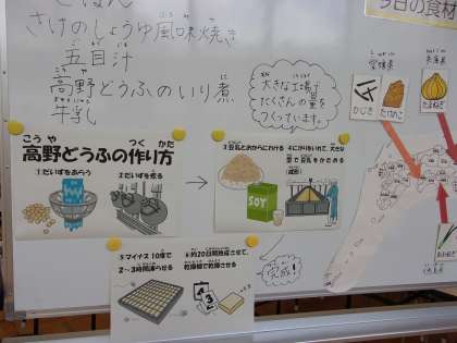 本校の栄養教諭は、子どもたちの食(給食)に対する興味関心を育みたいと、その日の給食に関わる豆知識・話題を毎日提供しています。