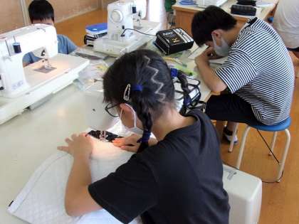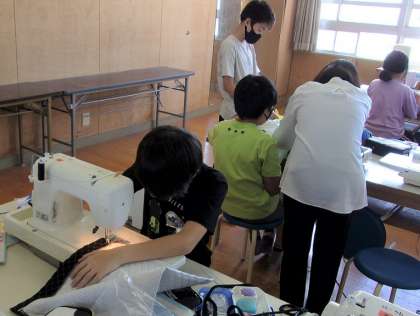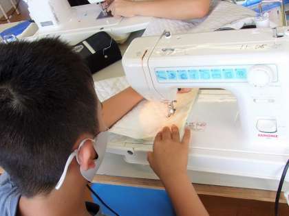 ミシンでナップサックを作ります。修学旅行に持っていきます。