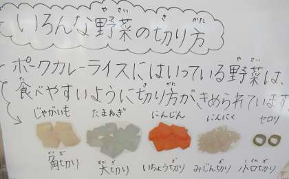 ポークカレーライスの野菜は、食べやすくするために、切り方を変えています。