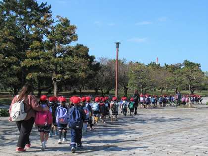 1年生ははじめての遠足、しっかり並んで歩くことができました。