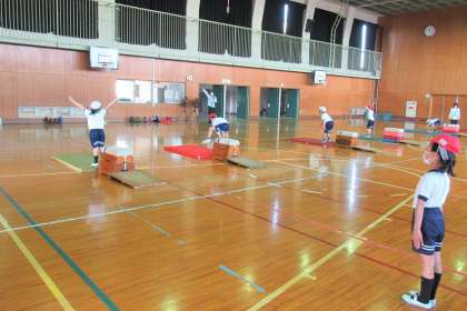「跳び箱を使った運動」 どうすれば上手に跳べるかを考え、発表しました。