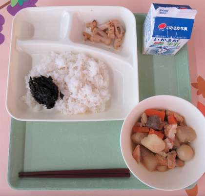 関東煮、れんこんの梅風味焼き、のりのつくだ煮、ごはん・牛乳