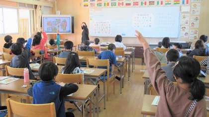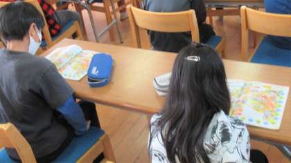 子どもたちは、教科書の中から『Supermarket』を見つけます。