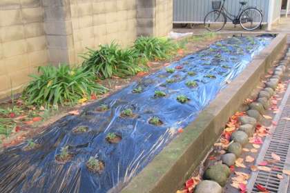 本校も、管理作業員さんが正門から玄関までのプランターと駐輪場横の花壇に苗を植えてくれました。