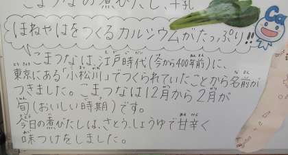 こまつなは、「小松川(こまつがわ)」という場所でつくられていたので、名前がつきました。