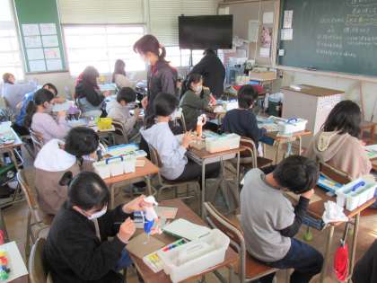 紙粘土で表した思い思いのポーズに色をぬりました。