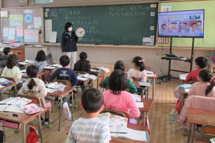 「とけいをよもう」、住吉小学校の子どもたちは、教室で、オンラインで、しっかり学習しています。
