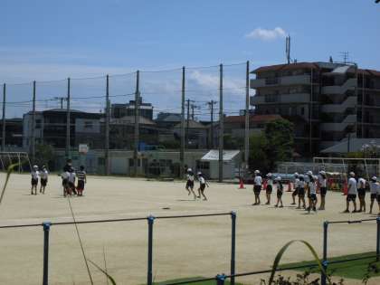 今日は、よく晴れた日でした。 運動場で、体育をしてみんな元気に 体を動かしていました。