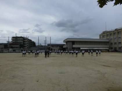 曇ってはいましたが、運動場で 運動会の練習をしています。