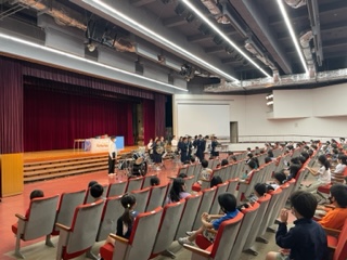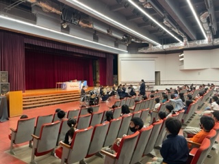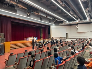 住吉中学校の演劇放送部の司会ではじまりました。そして、吹奏楽部の演奏をききました。