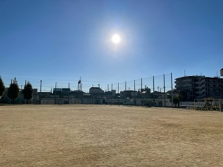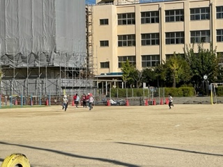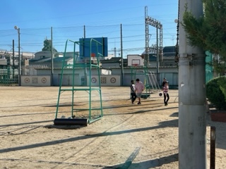 子ども達は、運動場で追いかけっこをしたり、バスケットボールをしたりしています。