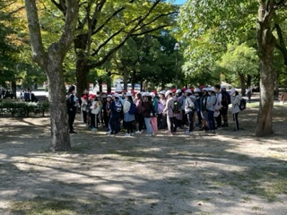 ? 原爆ドームをバックに、写真撮影をおこないます。
