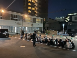 部屋に荷物を置いて、また、外に出て避難訓練を行います。