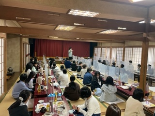 あいさつが終わったあと、井関先生から次の予定の話です。 この後、この場所で退舎式です。