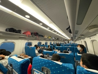 子どもたちは車内で、静かに話したり、カードゲームをして楽しく過ごしています。