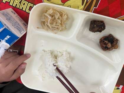 初めて食べたくじらは、お肉みたいでおいしい!ケチャップ味でおいしい!と好評でした。