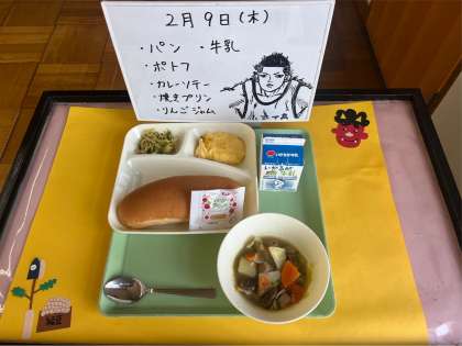 今日の献立は コッペパン ポトフ カレーソテー 焼きプリン りんごジャム です。