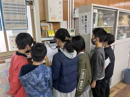 給食委員会(5.6年生)は毎日 今日の献立と、その日の献立から話題をひとつ、そして最後に給食クイズを放送しています。