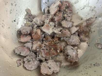 バジルや塩、こしょうで味付けした鶏肉はオーブンで焼き上がると調理室にバジルのいい匂いが広がっていました。