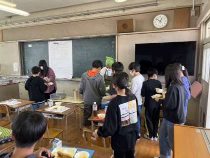六年生の教室では、カレーもゼリーのおかわりも大行列ができていました。「おかわりジャンケン勝てた!」「もっと食べたかった!」「まだまだ食べれる!」と嬉しい声がたくさん聞けました。