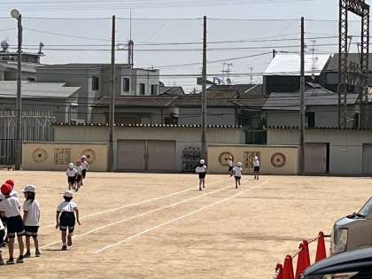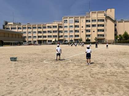 スポーツテストを行いました。1組はソフトボール投げ、2組は50m走をしました。暑い中でしたが、水分補給をしながら、みんなが力を発揮して取り組むことができました。