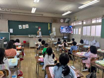 給食の時間は「変わりピザを作っている様子」の動画を見ました。