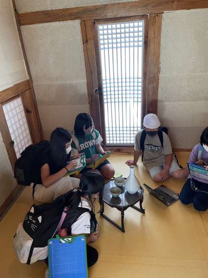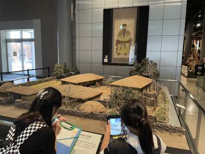 万博公園の民族博物館で伝統文化に触れています。朝鮮半島の家について調べています。