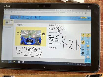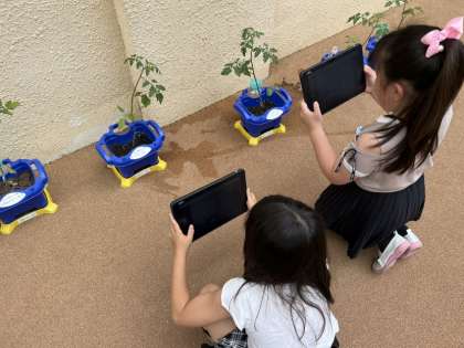ミニトマトの観察をしました。写真を撮り、発表ノートにまとめました。すでにトマトのにおいがしていたことにみんなビックリでした。