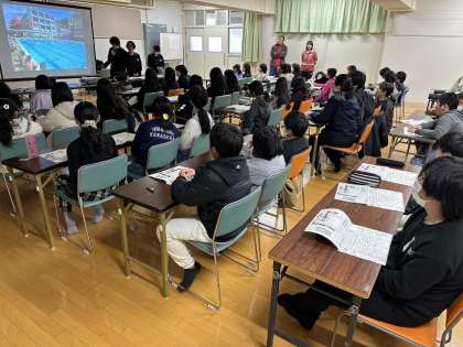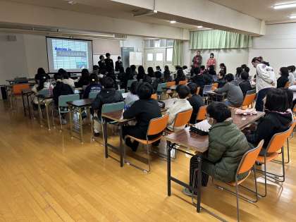 住吉中学校の生徒会の皆さんが、中学校の紹介をしに来て下さいました。小学校にはない教科や部活動、行事に興味津々の様子で、期待が広がっている様子でした。