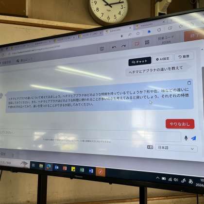 今日はtomoLinks(生成AI)を使って、アブラナとヘチマの違いを調べました。子どもたちは、質問を工夫しながらいろいろな違いを見つけることができました。