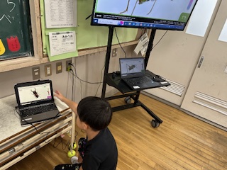 今日は残念ながら雨で遠足が延期でした。代わりにタブレットを使ってたくさん虫を探すことができました。普段は見られない部分を見つけて、大興奮の様子でした。