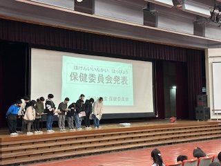 保健委員会の児童が来週の手洗い週間にむけて、全校児童にけがや病気の予防の呼びかけをしてくれました。気温が下がってきたり、感染症が流行したりする時期に、みんなで注意していけたらと思います。