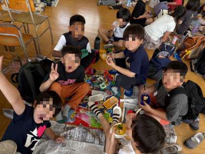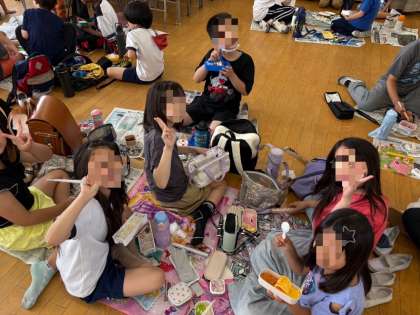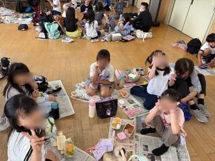 給食の時間は遠足気分でみんなで楽しく食べました。お弁当の用意ありがとうございました!