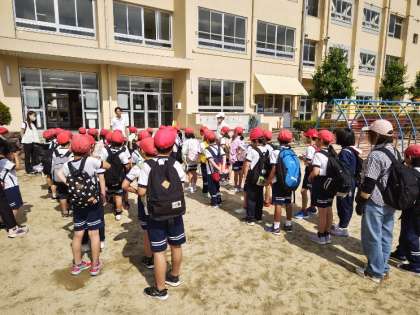 道路の歩き方や電車の乗り方などを確認して、遠足に出発です 素晴らしい遠足日和です