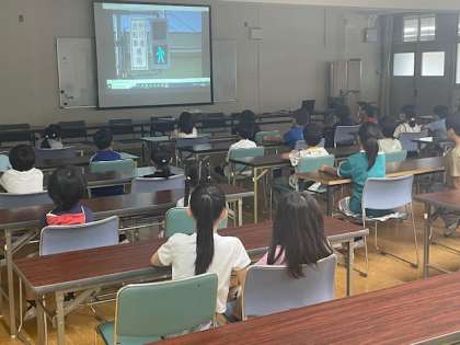 本日、住吉警察にお越しいただき、3・4年生が交通安全教室を実施しました。