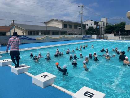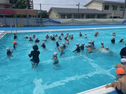 水中じゃんけんやだるま浮きなど、水遊びを楽しんでいました。
